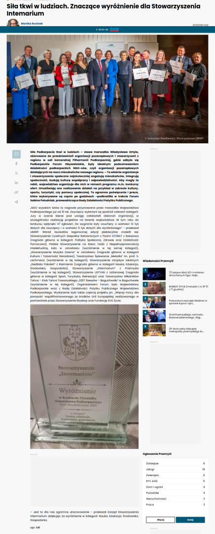 Życie Podkarpackie - Siła tkwi w ludziach. Znaczące wyróżnienie dla Stowarzyszenia Intemarium